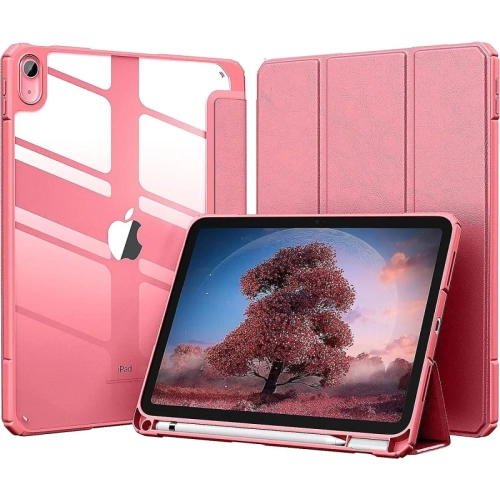 Étui iPad 10th génération avec porte-crayon - coque arrière transparente, veille/veille automatique, couvercle mince antichoc pour iPad 10th 2022 génération 10,9 po (LeafRed)