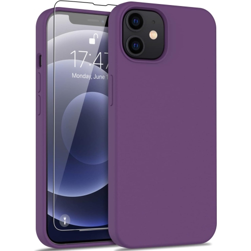 Étui iPhone 12 avec protecteur d'écran, contour en caoutchouc de silicone doux et soyeux pour iPhone 12 Pro