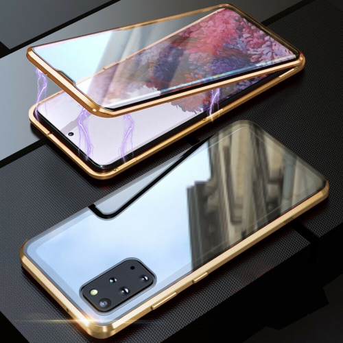 Étui magnétique en verre trempé et en métal transparent à 360° à l’avant et à l’arrière pour S21 Ultra DE SAMSUNG (doré)