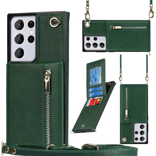 Étui portefeuille à bandoulière amovible pour Galaxy S21 Ultra 5G de Samsung avec porte-carte, rabat en cuir de polyuréthane