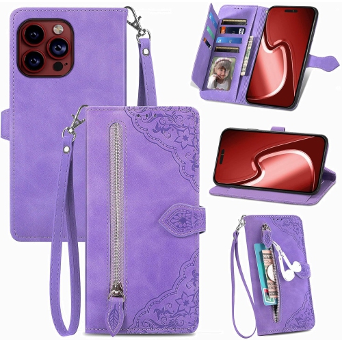 Étui portefeuille à rabat compatible avec l'étui de poche à fermeture à glissière iPhone 15 Pro Max avec fermeture magnétique à fente pour carte