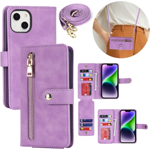 Étui-portefeuille avec porte-carte pour iPhone 14, bandoulière ajustable avec béquille en cuir de polyuréthane fentes pour cartes