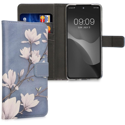 Étui portefeuille compatible avec l'étui Moto G72 de Motorola pour téléphone - Taupe-bleu/blanc/gris bleu