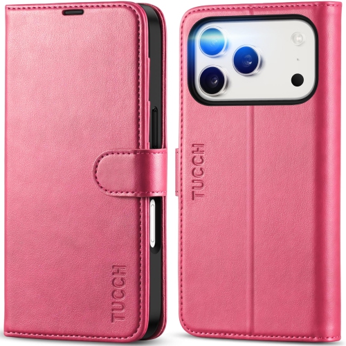 Étui portefeuille compatible avec l'iPhone 17 Pro (6,3 po) 2025, 4 fentes pour cartes | Blocage RFID | Cuir PU | Fermeture magnétique | Étui folio protecteur | Rose vif