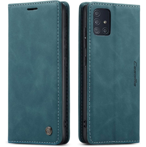 Étui portefeuille en cuir classique avec fente pour carte et rabat magnétique pour Galaxy A51 de Samsung (Bleu)