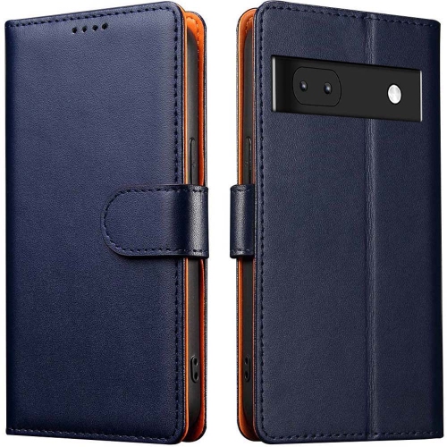 Étui portefeuille pour Pixel 6a de Google rabat en cuir véritable avec béquille antivol RFID béquille fermeture magnétique solide porte-carte crédit fentes protection étui portefeuille Pixel 6a (bleu)