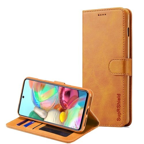 Étui portefeuille magnétique en cuir véritable SupRShield pour Galaxy A71 de Samsung.