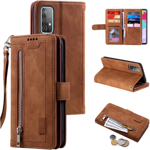 Étui portefeuille pour Galaxy A53 5G de Samsung, 9 fentes pour cartes rétro et mat, étui de poche à fermeture à glissière en cuir de polyuréthane