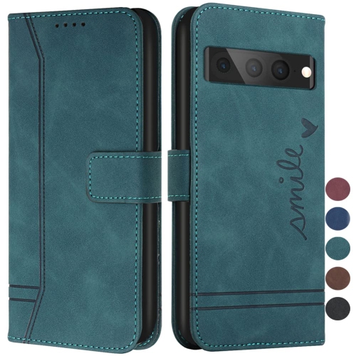 Étui portefeuille pour Pixel 7 Pro de Google, étui à rabat en cuir avec béquille magnétique pleine protection pour Pixel 7 Pro de Google compatible avec le Pixel 7 Pro Smile Green