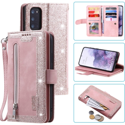 Étui portefeuille pour Samsung Galaxy S20 FE 5G, rétro mat 9 fentes porte-cartes avec poche à fermeture à glissière Étui en cuir pu