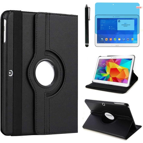 Étui pour Galaxy Tab 4 10.1 po de Samsung (SM-T530 SM-T531 SM-T535) - Étui-support pivotant à 360 degrés Couverture complète de protection Smart Cover, stylet, pellicule d'écran (noire) piles pour téléphone cellulaire
