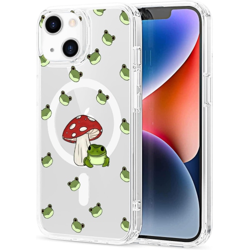 Étui pour iPhone 14 compatible avec MagSafe, étui magnétique adorable motif grenouille de Cartoon transparent pour filles