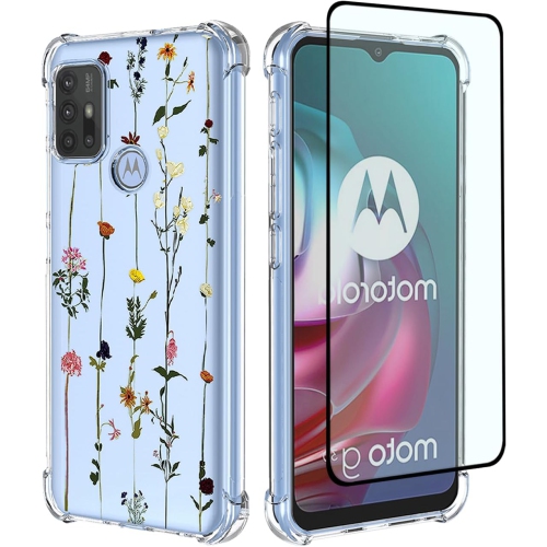 Avec protecteurs d'écran HD, compatible avec le Moto G30 2021 XT2129-1 XT2129-2 de Motorola/Moto G10 XT2127-1 XT2127-2 XT2127-3 de Motorola/Moto G20 XT2128-1 XT2128-2 de Motorola/Moto G10 Power de Motorola, étui transparent de PAMR0002IN PAMR0008IN PAMR0010IN 6,5 po pour Moto G30 de Motorola, [fait de TPUR de qualité] : Cet étui mince et transparent à bordure de protection ne jaunit pas et ne laisse pas de filigrane, et son joli motif floral en met plein la vue à votre téléphone avec des matériaux de grande qualité
