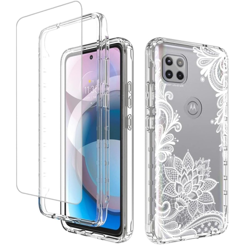Étui pour Moto One 5G Ace/Moto G 5G XT2113 avec protecteur d’écran en verre trempé, contour antichoc à motif floral