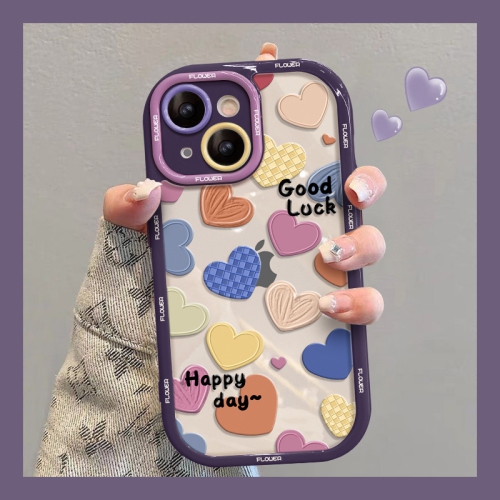 Adapté pour Apple 16 mois étui téléphone iPhone15promax silicone transparent 13/12 plein écran couleur love anti-chute pour téléphone mobile