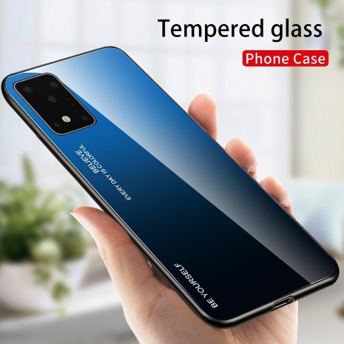 Le dos du boîtier en verre trempé dégradé offre une sensation de douceur. cadre en tpur souple conçu pour absorber les chocs. Les textures de l'étui sur le côté offrent une prise sûre et un profil mince. L'utilisation des couleurs à dégradé vertical rend la coque plus avancée et texturée.