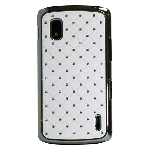 Étui rigide en plastique d'Exian pour Nexus 4 de Google, cristaux intégrés plaqués argent, blanc
