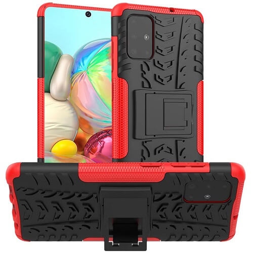 Étui rouge pour Galaxy A71 de Samsung, étui robuste, antichoc et robuste avec béquille