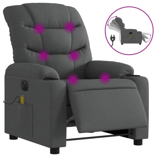 Fauteuil de massage inclinable électrique en tissu gris foncé vidaXL