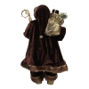 De l’or et du brun, cette figurine de père Noël médiéval moderne. Équipé d’une gigoteuse bronze remplie de cadeaux, d’une corne dorée, de brins de pin et d’un majestueux bâton d’or. Transporter un sac-cadeau et du personnel doré