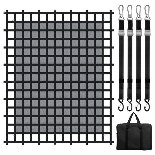 · Points de fixation multiples, ajustement flexible : Le filet d'arrimage avec sangles télescopiques réglables de 13 à 59 po et 16 anneaux en D en acier inoxydable permet d'ajuster le point de fixation sur demande, assurant que le filet d'arrimage peut s'adapter à une variété de tailles et de formes, ce qui est idéal pour les cargos lourds ou irréguliers.