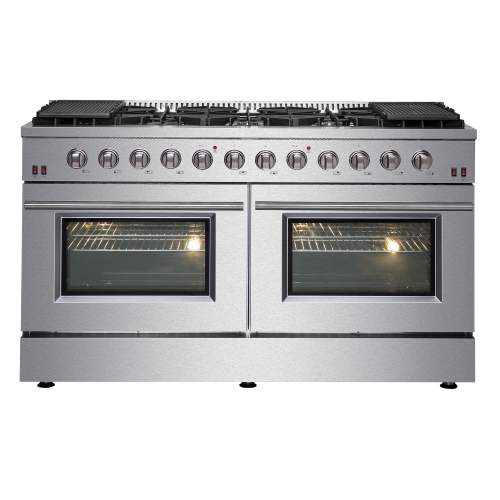 Forno Galiano – Cuisinière à gaz autonome de 60 po, 10 brûleurs, deux fours, plaque chauffante, écoénergétique