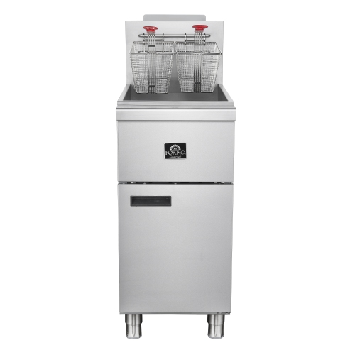 La friteuse commerciale au gaz naturel de Forno est conçue pour frire de gros volumes avec une construction en acier inoxydable durable qui assure une performance durable et un entretien minimal. Les trois 30 000 BTU brûleurs SpeedHeat produisent une chaleur constante, tandis que les commandes thermostatiques précises permettent des températures réglables de 200Â à 400Â °F pour des résultats de cuisson fiables. Les deux paniers en treillis métallique avec poignées isolantes et valve de vidange complète améliorent l'efficacité et la sécurité pendant le fonctionnement. Conçue avec une forme verticale compacte, des pattes ajustables et un dosseret intégré, cette friteuse simplifie le nettoyage et maximise l'espace dans la cuisine. Le thermostat à action enclenchable autonome ne nécessite aucune connexion électrique, ce qui simplifie l'installation. Pour plus de sécurité, la protection avancée contre la surchauffe assure la sécurité des opérations. Idéale pour n'importe quelle cuisine commerciale, cette friteuse combine la puissance, la durabilité et la facilité d'utilisation pour augmenter la productivité et la productivité.
