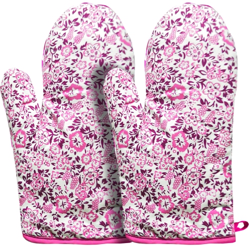 Gants de cuisine en lin canadien, 6 x 9 po, gants de cuisine en coton résistant à la chaleur, mitaines antidérapantes, gants de cuisine lavables, gants de cuisson, paire de 2 mitaines pour barbecue, cuisson, gril, violet imprimé