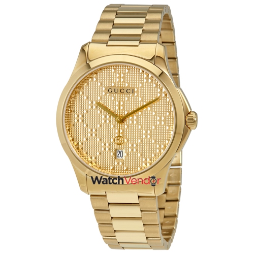 Gucci G-timeless Yellow Gold Diamond Pattern Dial Unisex Watch YA126461