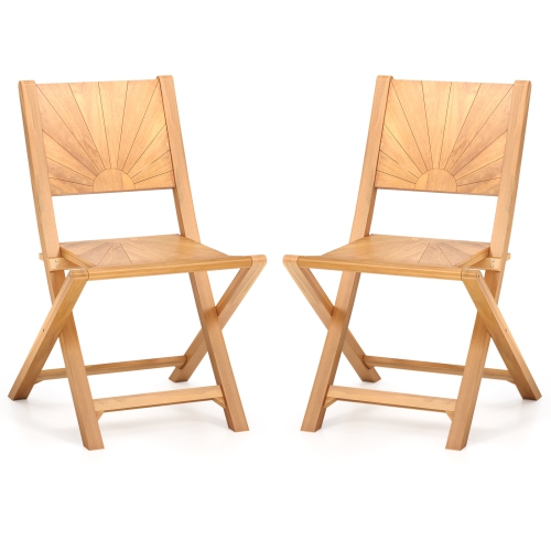 Gymax 2 PCS Folding Patio Chairs w/ Inclined Backrest Teak Wood Outdoor Dining Chairs
