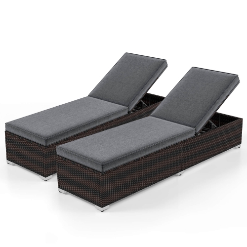 Gymax 2 PCS Outdoor Chaise Lounge w/ Long Seat Cushion Heavy-Duty Metal Frame