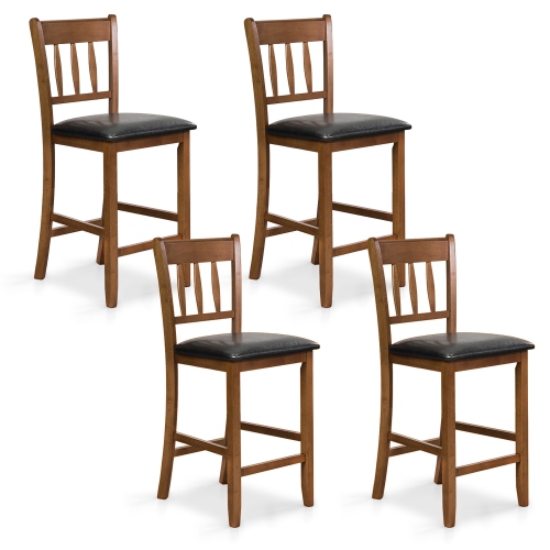 Gymax 25.5'' Bar Chair Set of 4 w/ Backrest Padded Seat & Footrest Rubber Wood Stool