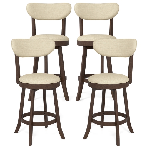 Gymax 25.5'' Counter Height Chairs Set of 4 w/ Padded Seat & Backrest Rubber Wood