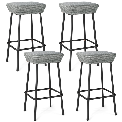 Gymax 29.5'' Metal Bar Height Stools Set of 4 w/ Rattan Seat & Footrest for Backyard