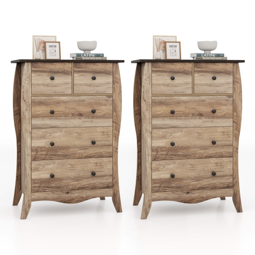 Gymax 2PCS 38'' Farmhouse Chest of Drawers w/ 5 Folding Fabric Drawers & Anti-tipping Kit