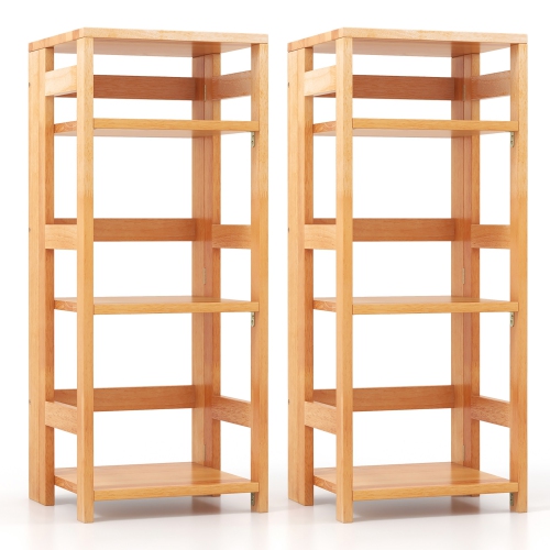 Gymax 2PCS 4-Tier Bookshelf Floor Storage Shelf w/ Rubber Wood Frame Anti-Toppling Kits