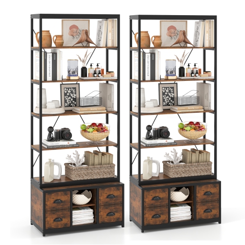 Gymax 2PCS 8-tier Bookshelf 79'' Freestanding Bookcase w/ 4 Fabric Drawers & Storage