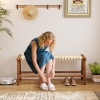 Gymax 47'' Long Teak Wood Patio Bench w/Weave Seat Solid Wood Legs Backless for Porch