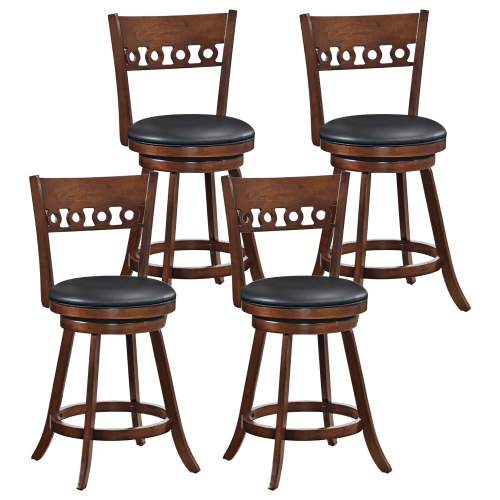 Gymax 4PCS 24.5'' Counter Height Bar Chairs Swivel Bar Stools w/ Rubber Wood Frame