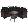 Gymax 4Piéces Ensemble de Mobilier Extérieur Fauteuils d’Angle en Rotin avec Coussins
