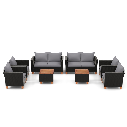 Gymax 8 PCS Wicker Patio Furniture Set w/ Removable Cushions Storage Coffee Table