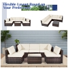 Gymax Ensemble de 6 Pièces deSalon de Jardin en Rotin avec Coussins Blancs