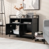 Gymax Large Litter Box Enclosure Cat Wooden Storage Cabinet with 2 Doors