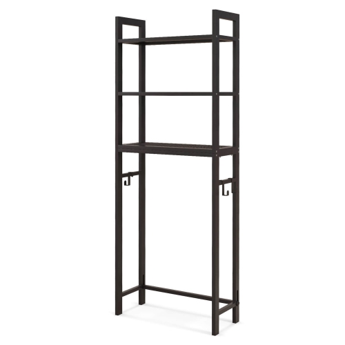 Gymax Over-The-Toilet Storage Shelf Space Saving Metal Bathroom Organizer Hooks Brown