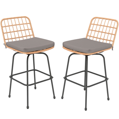 Gymax Patio 360° Swivel Bar Stools Set of 2 w/Backrests & Footrests Soft Seat Cushions