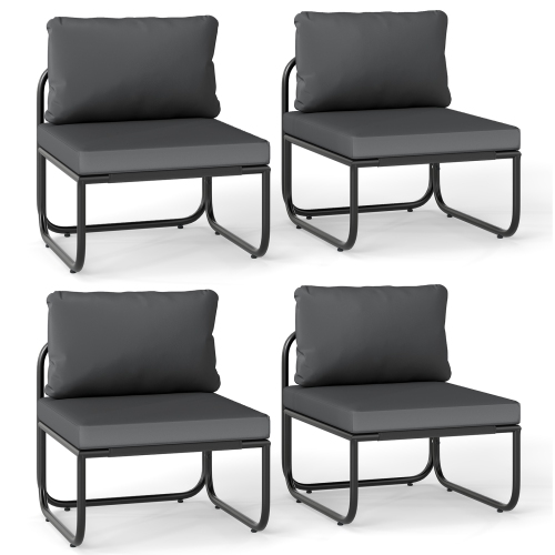 Gymax Patio Chairs Set of 4 w/ Removable Cushions Heavy Duty Metal Frame Poolside
