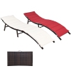 Gymax Set of 2 Folding Wicker Chaise Portable Lounge Chair w/ Double Sided Cushion