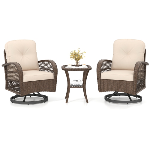 Gymax Set Of 3 Patio Swivel Rocker Set Gliding Bistro Furniture Set w/ Tempered Glass Table