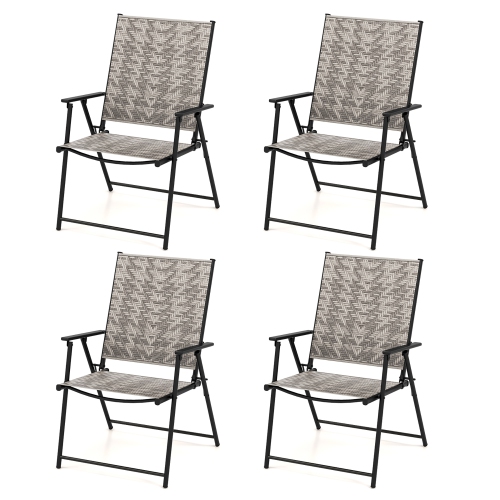 Gymax Set of 4 Folding Chairs w/ Armrests Metal Frame for Garden No Assembly Patio