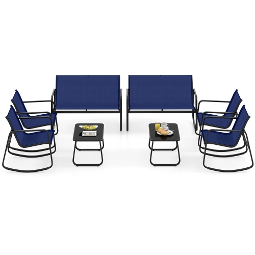Gymax Set Of 8 Outdoor Patio Rocking Set 4 Rocking Chairs & Loveseat w/ Glass-Top Table